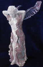 Each ceramic sculpture is an original. Low fire clay is used to sculpt a one of a kind piece and then fired in an electric kiln. A gas raku kiln is used in a second firing to create unique finishes in the glazing process7.